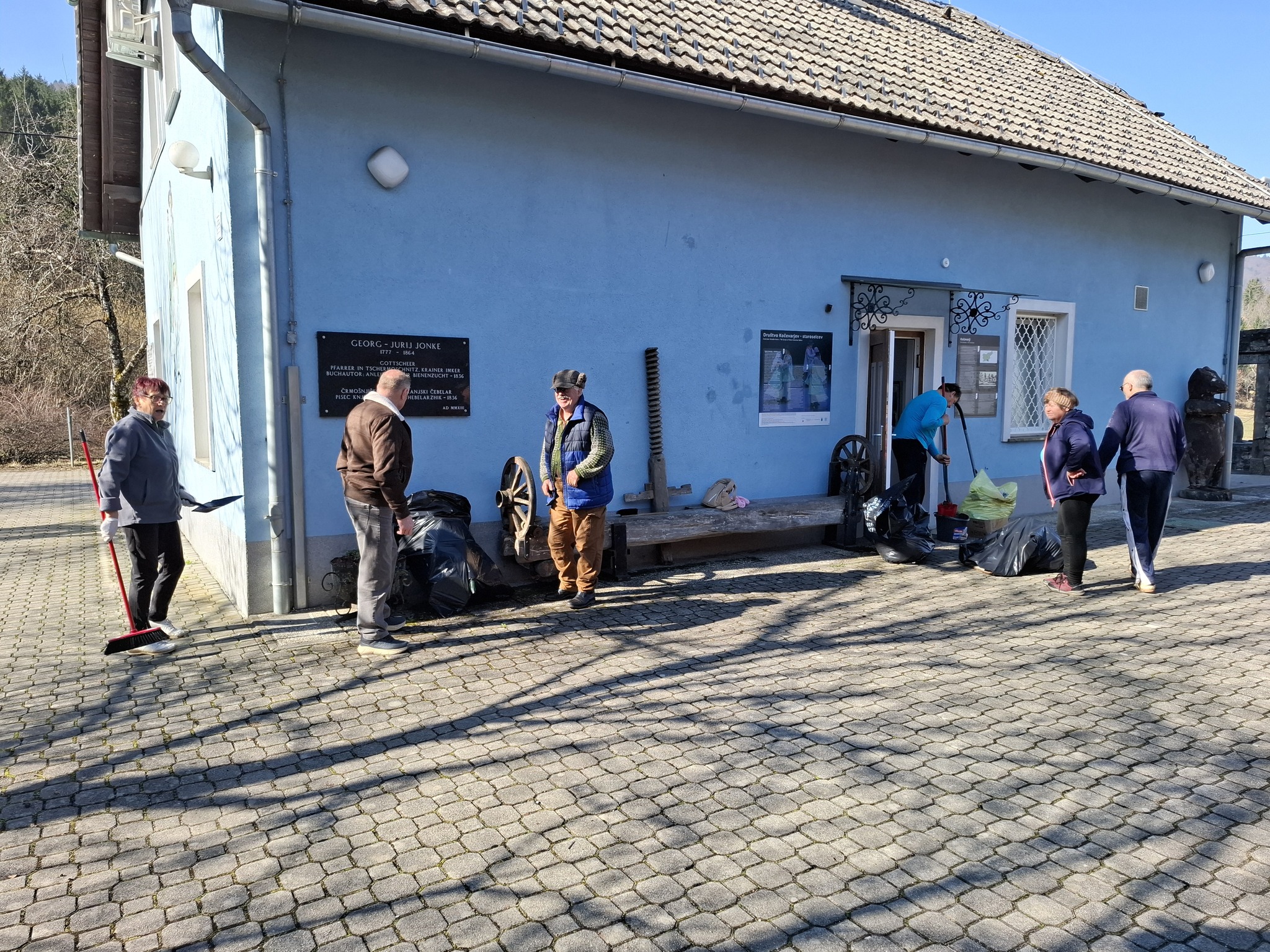V soboto, 28. februarja 2026, se nas je nekaj čez deset članov Društva Kočevarjev staroselcev na sončen dopoldan zbralo na tradicionalni čistilni akciji doma in njegove okolice. Najprej smo se lotili grabljenja, pometanja in pobiranja smeti.