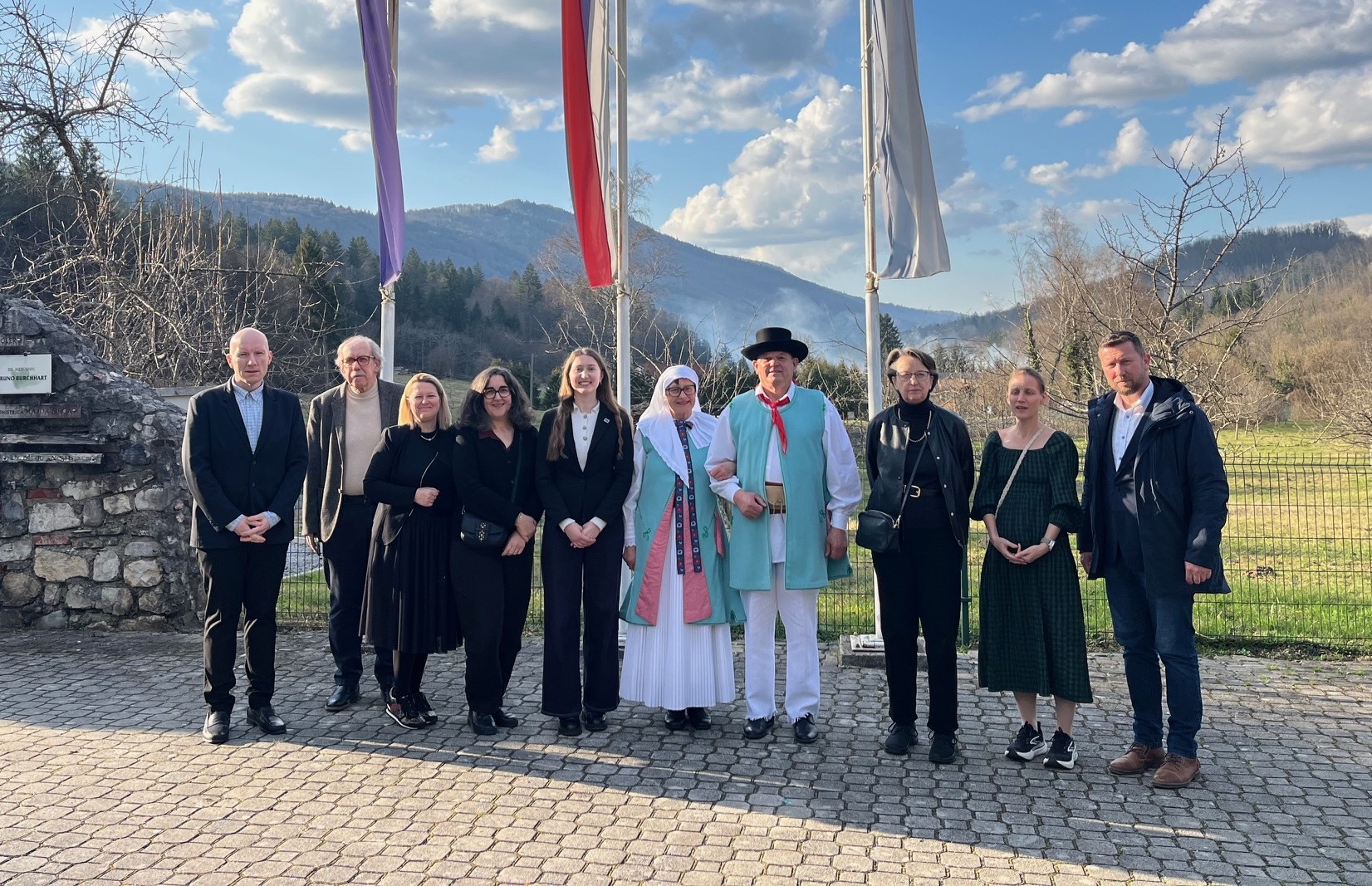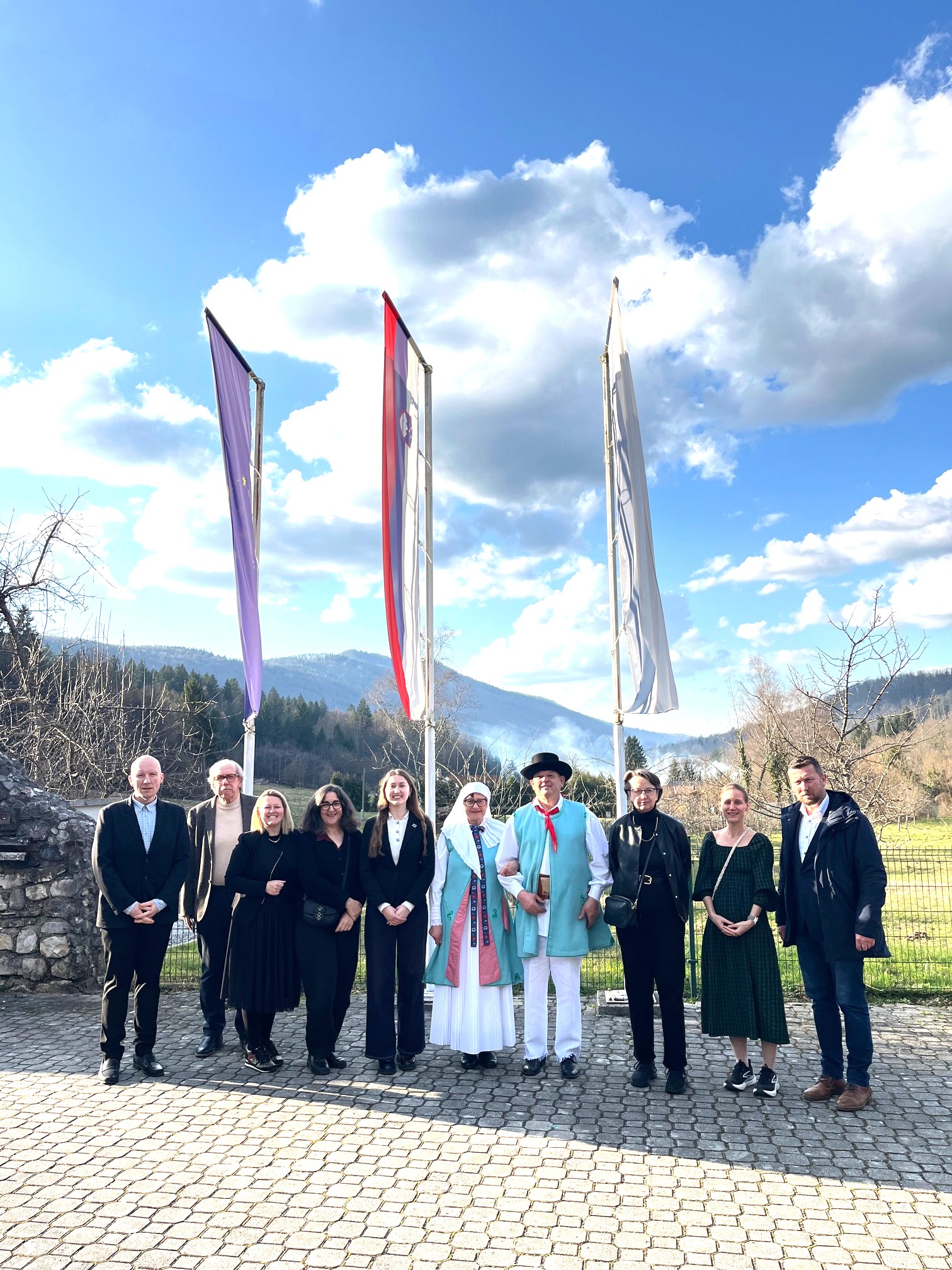 Predstavniki v Sloveniji nepriznane nemško govoreče manjšine, predsednica Zveze kulturnih društev nemško govoreče narodne skupnosti v Sloveniji Urška Kop, Jan Schaller, predsednik Zveze Kočevarjev in Štajercev v Sloveniji ter gostitelj Primož Primc so delegaciji podrobno predstavili nesprejemljivi položaj nepriznane nemško govoreče manjšine v Sloveniji, ki je kot avtohtona manjšina na tem ozemlju priznana že iz časov kraljevine Jugoslavije. Predstavili so jim dobro sodelovanje na lokalnih nivojih, s posameznimi občinami, kjer delujejo, medtem ko je sodelovanje s slovenskimi vladnimi organizacijami iz leta v leto slabše. Vlada in ministrstva sicer v medijskih objavah zagotavljajo dobro sodelovanje, kar pa je po mnenju nepriznane manjšine farsa in žalitev, saj to manjšino politika niti noče imenovati narodno skupnost, kot imenuje sicer tudi nepriznane manjšine iz nekdanje Jugoslavije.